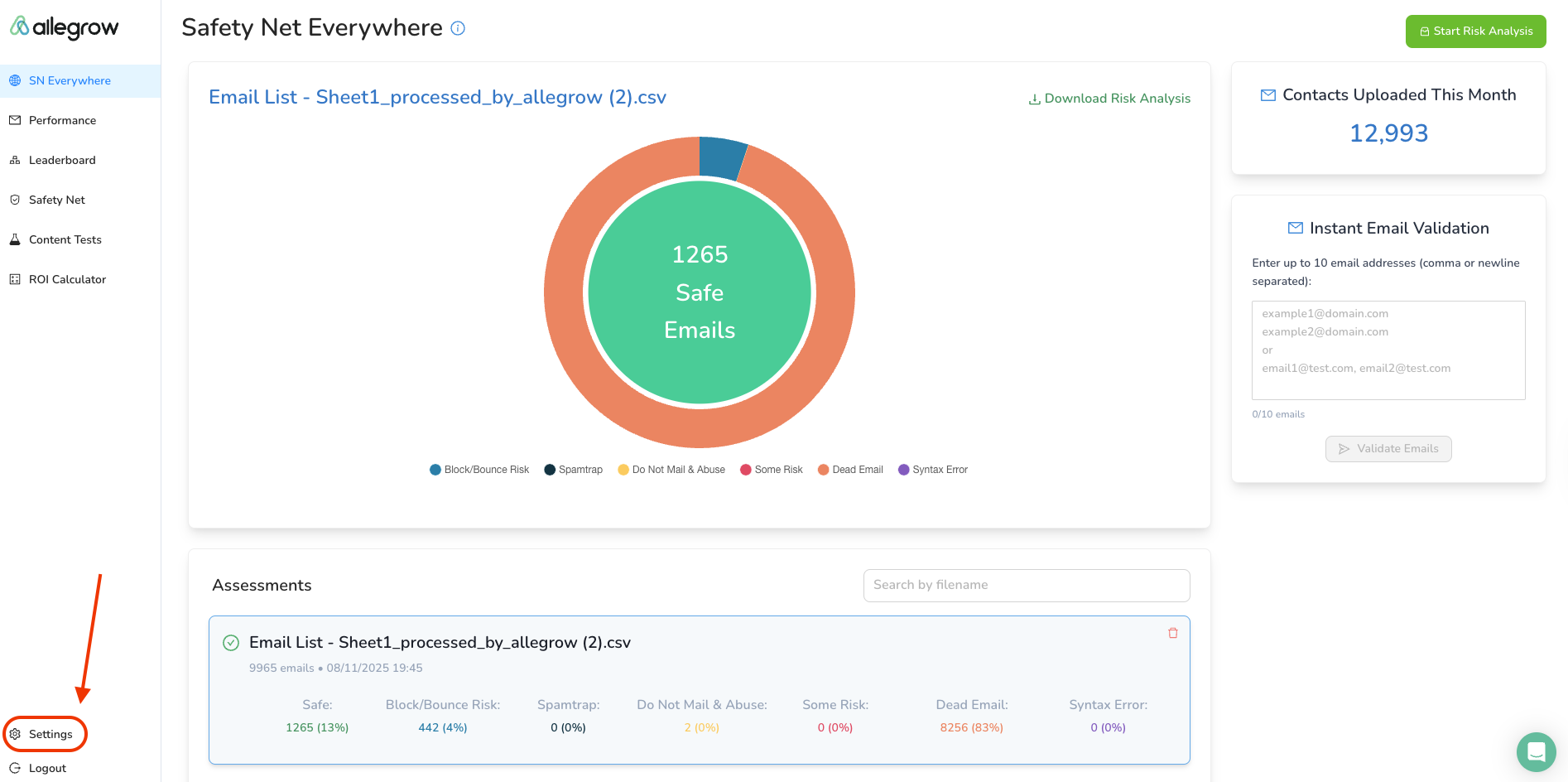 - Select 'Settings' in the bottom left-hand corner of the navigation pane on your Allegrow account.
