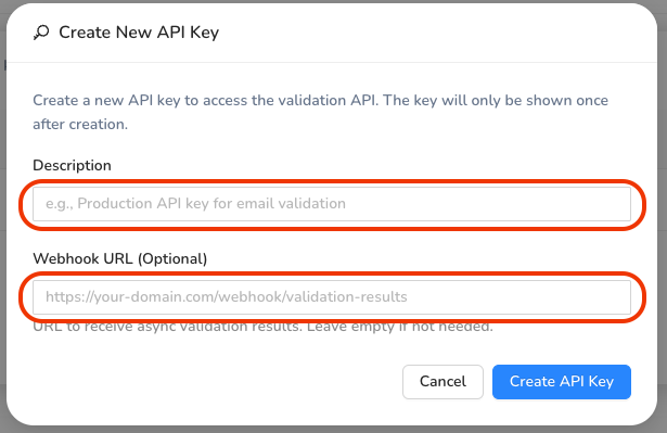(*) The Webhook URL is used for async validation results and only needs to be completed if you're opting for this set-up in line with our guidance here.